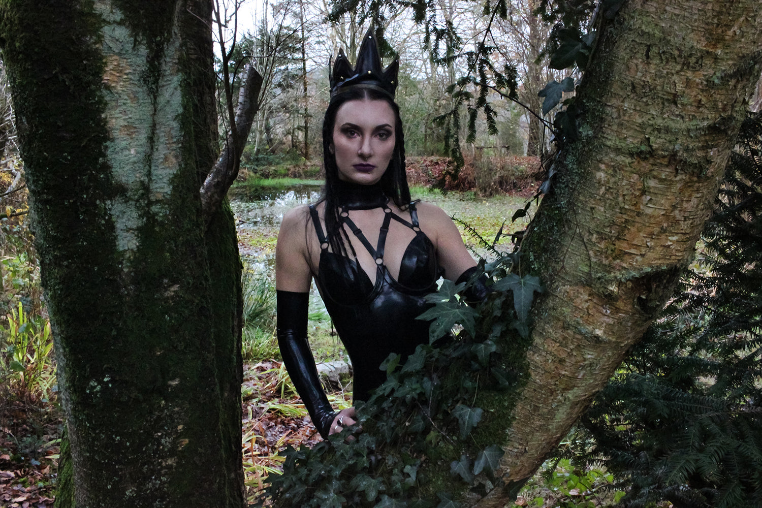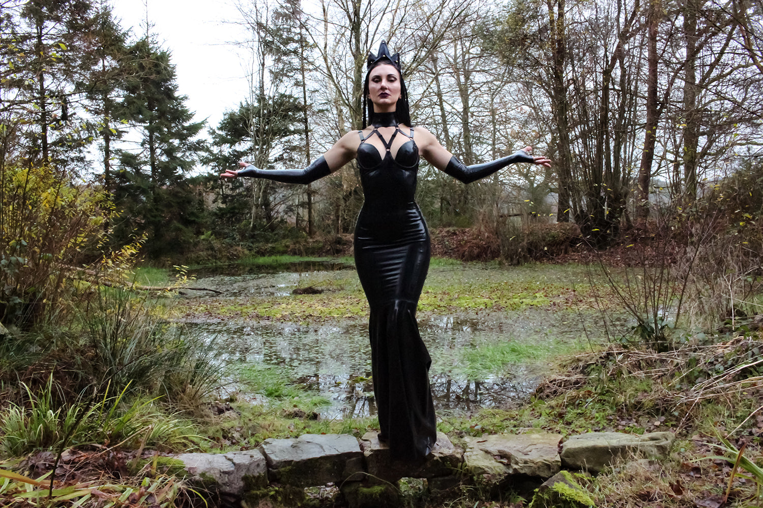 As with all Bondage styles, this gown has shaped, underwired cups that attach to a collar with a adjustable straps.