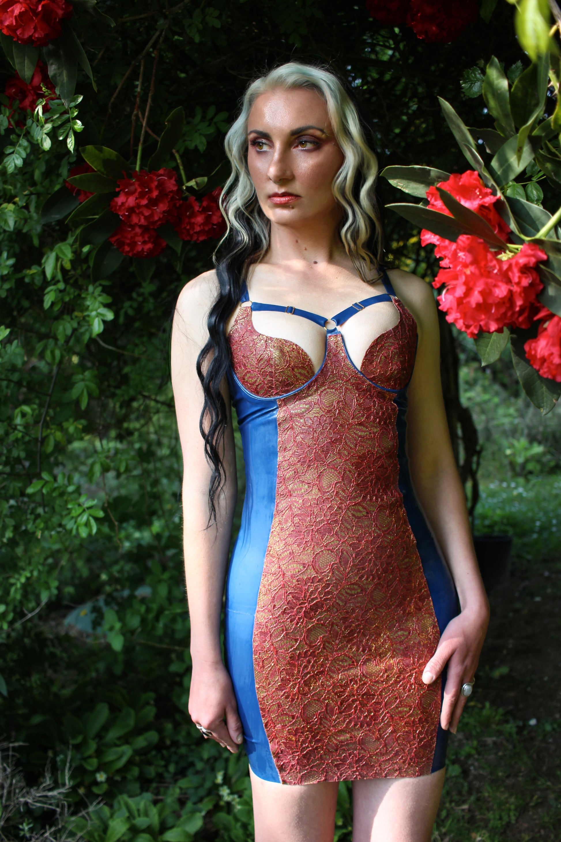 Latex-lace panel Lyra dress