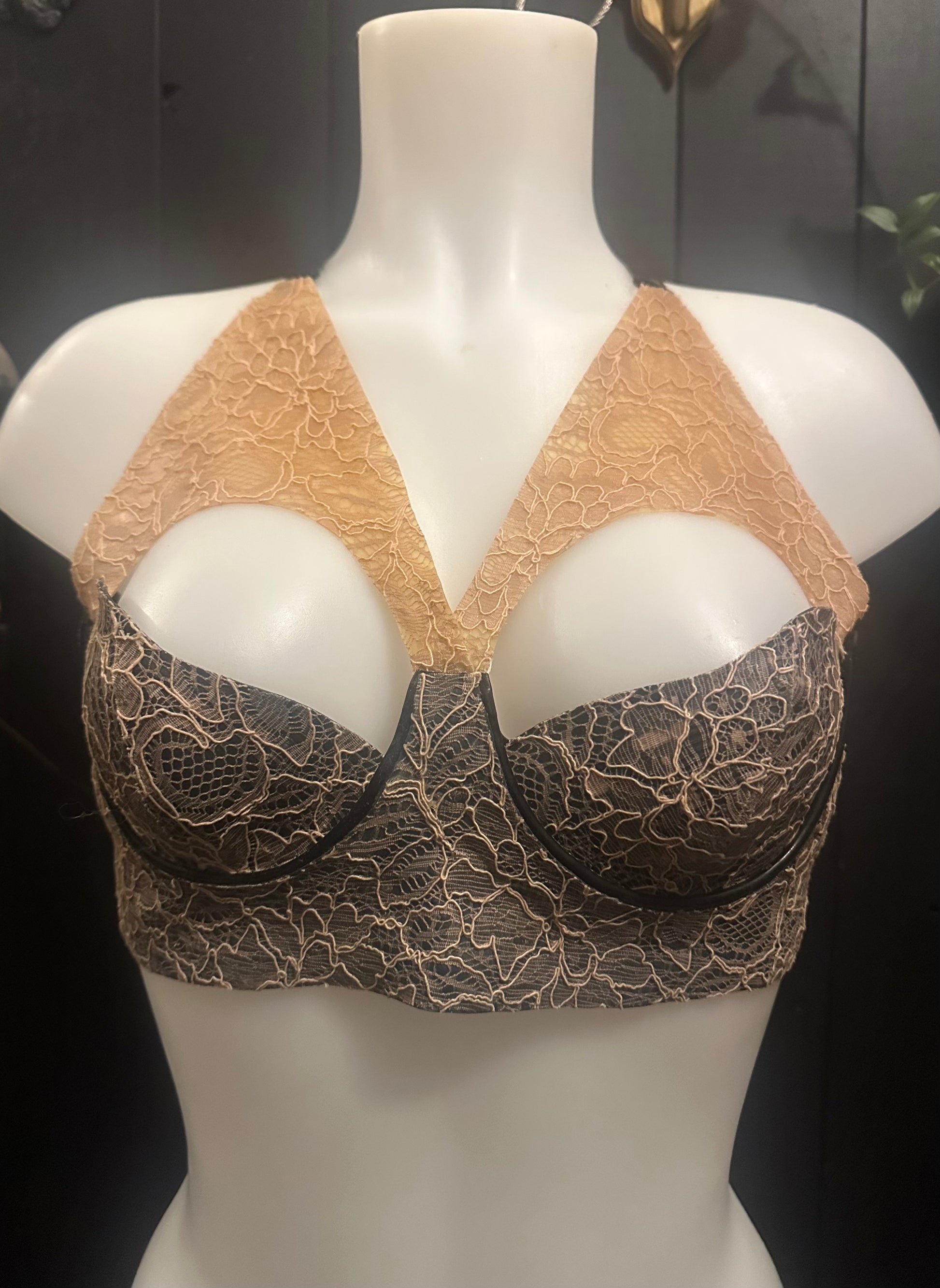 Latex-lace Aurora bra sample