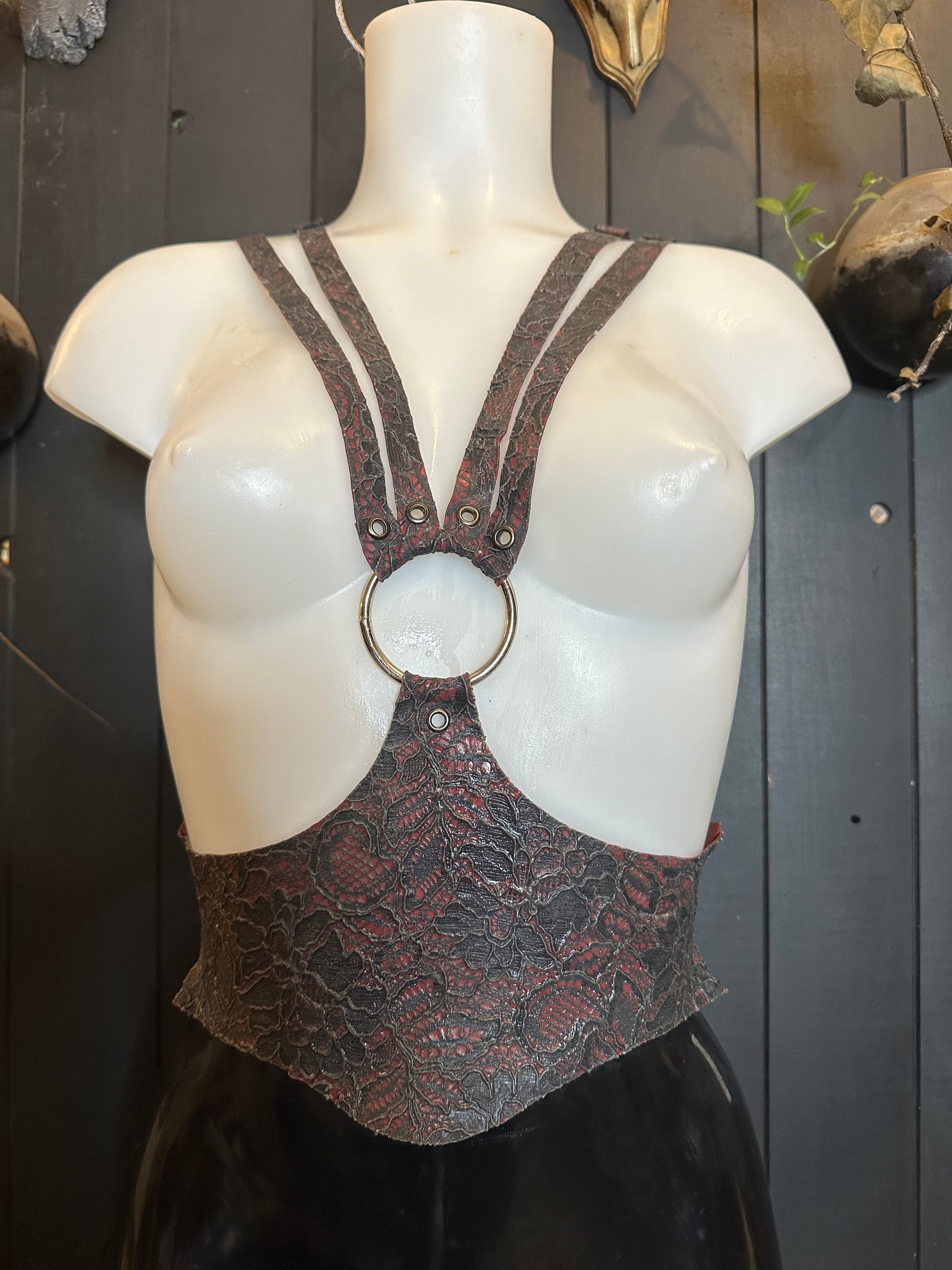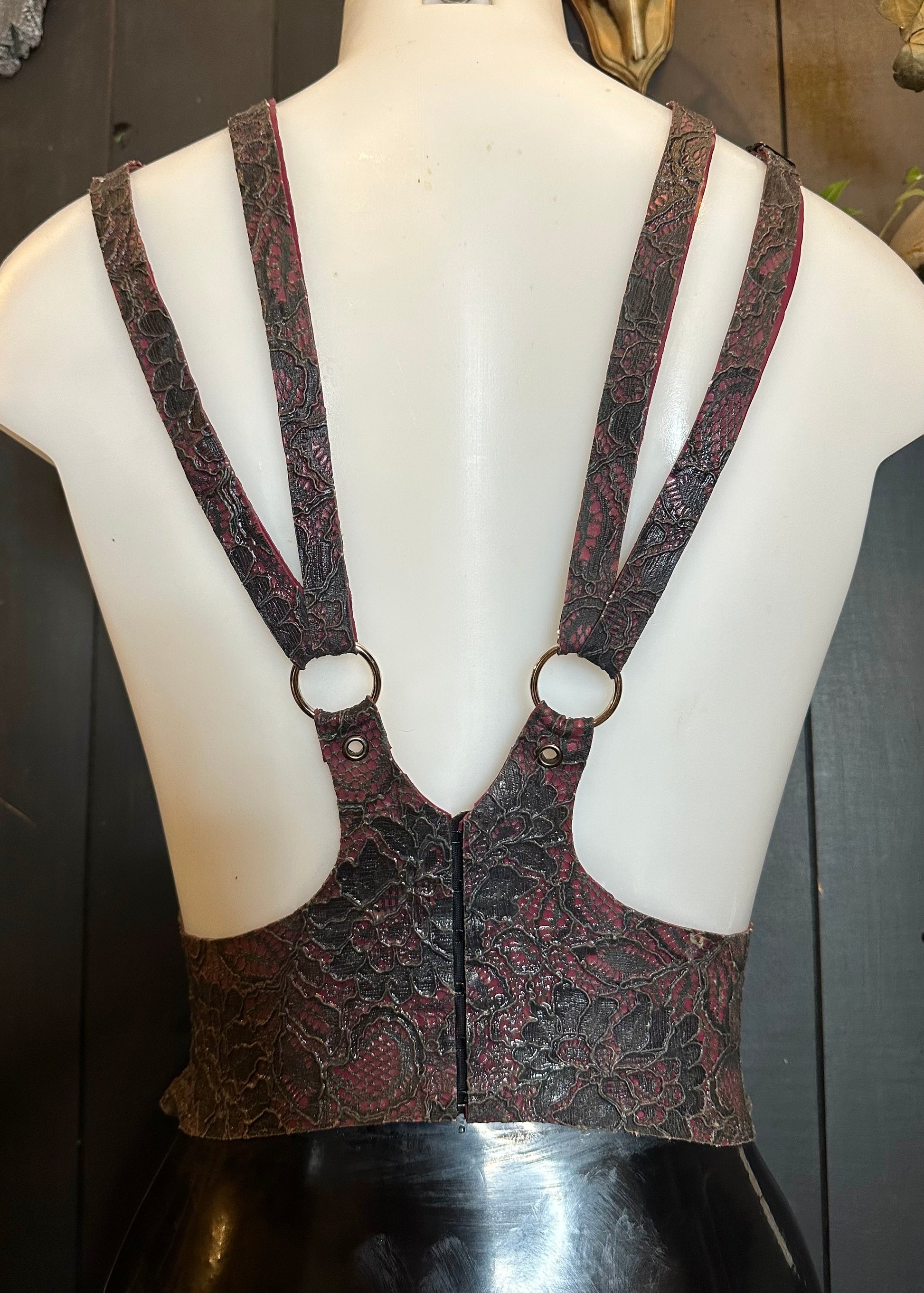Latex-lace cinched harness sample, Ready to ship