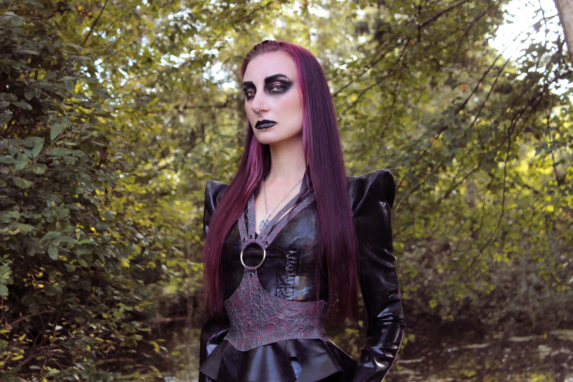 Latex harness that cinches in the waist, while adorning the body with adjustable straps and o-ring details.