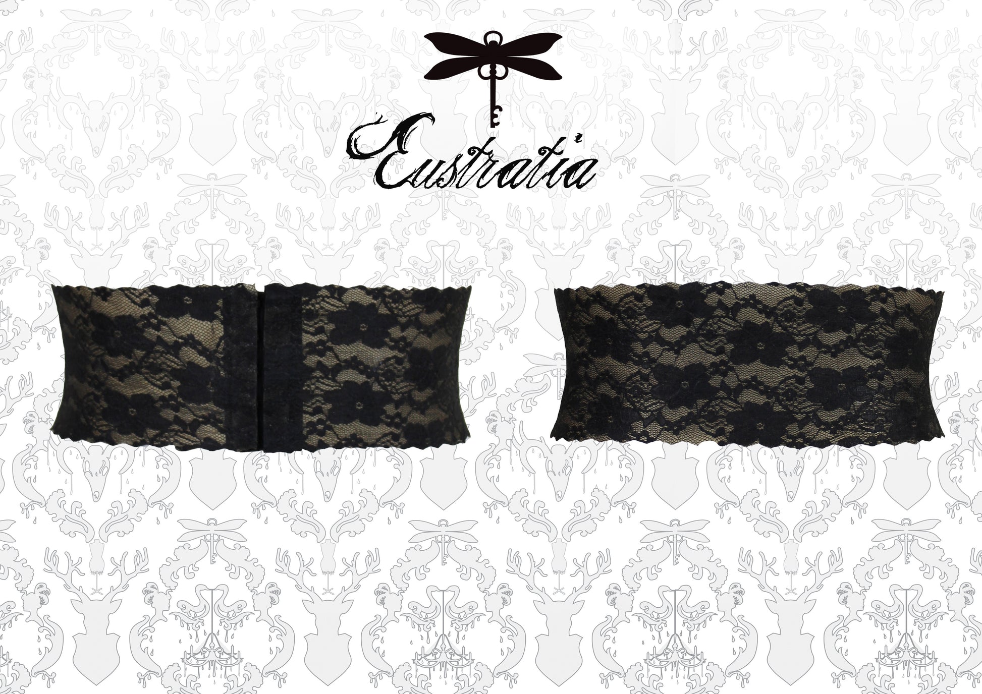 Wide waist belt with hook & eye fastening, made in our signature latex-lace.