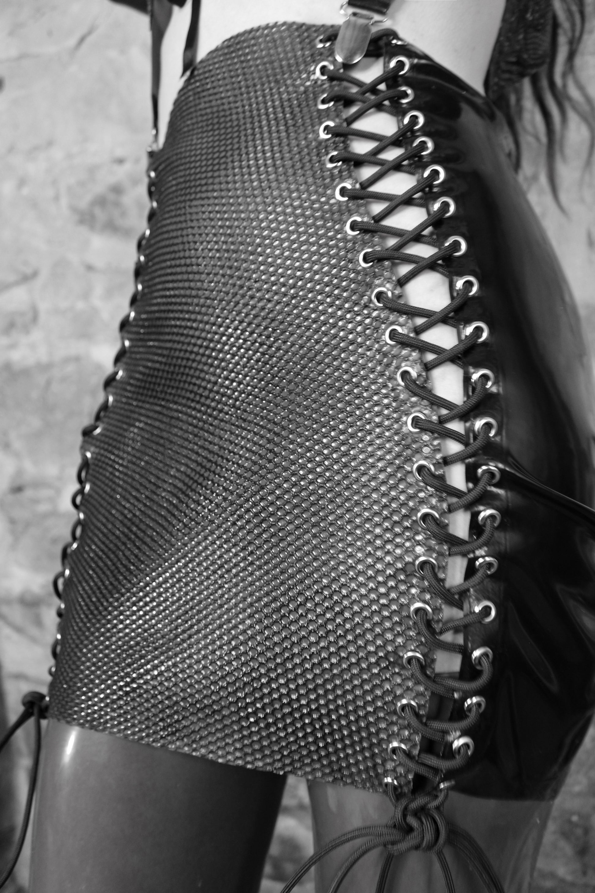 Latex-net panel for the lace-up skirt the base can be made in any latex colour, the net fabric is black.