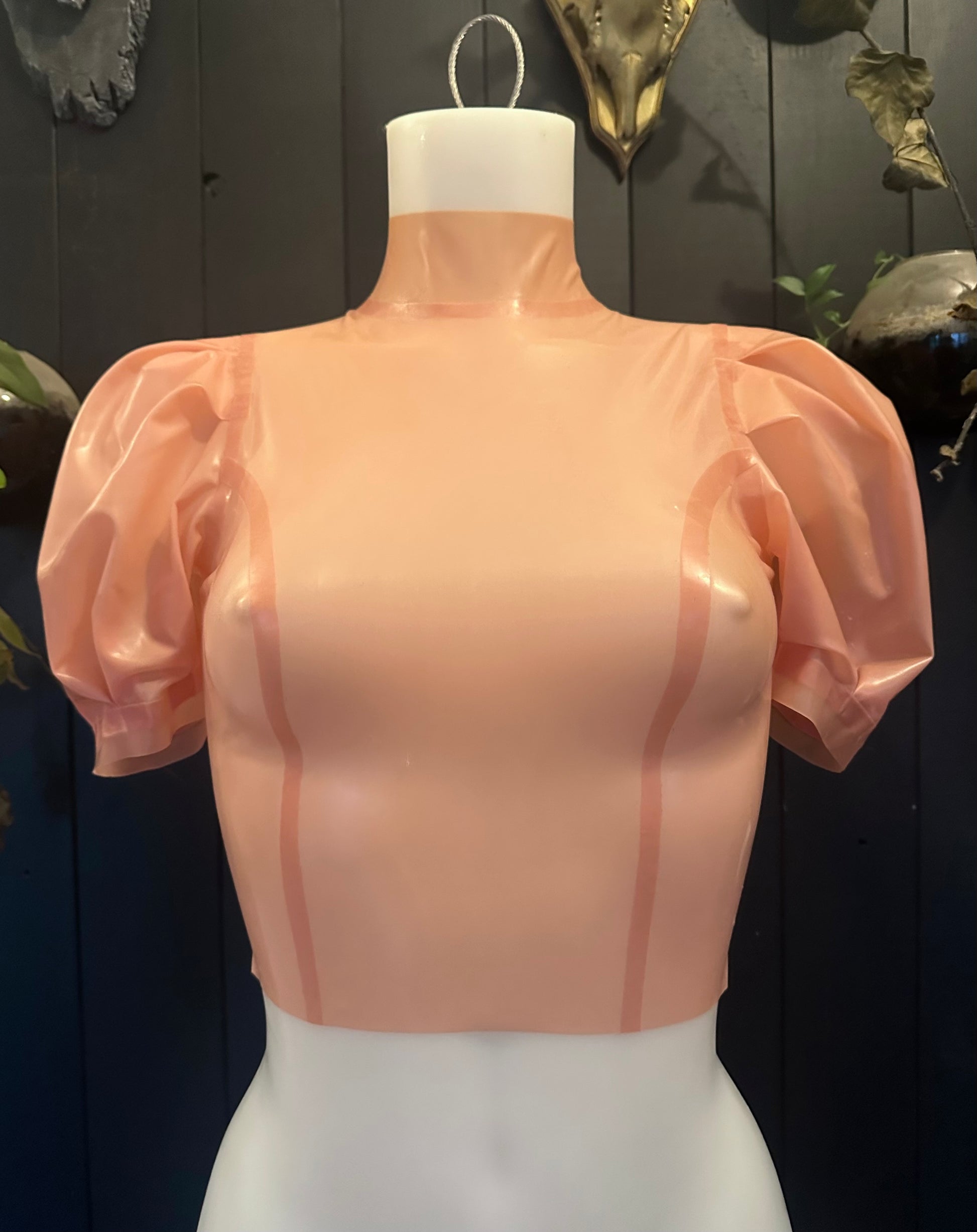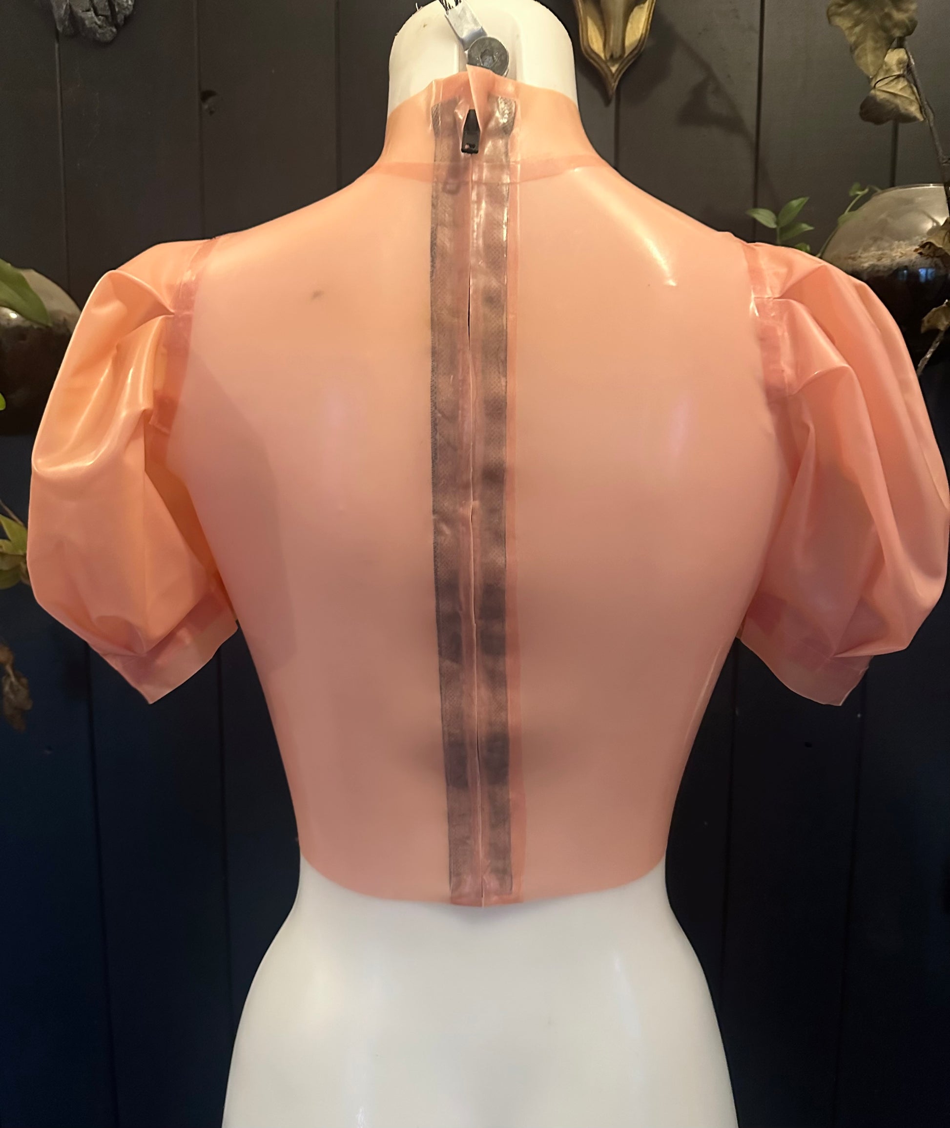 Puff sleeved top in translucent pink, size small, UK 8, Euro 36.