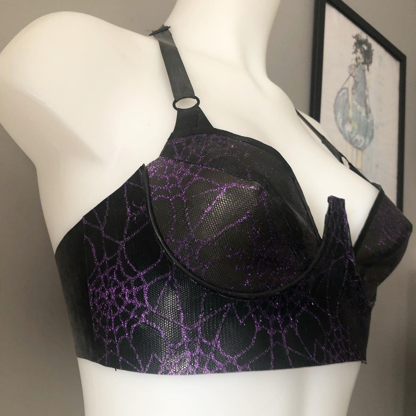 latex bra in our plunge halter style with underwires and adjustable strap.